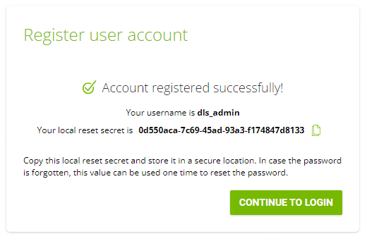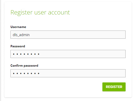 - Enter the administrator account dls_admin password, and click REGISTER to complete the account registration.