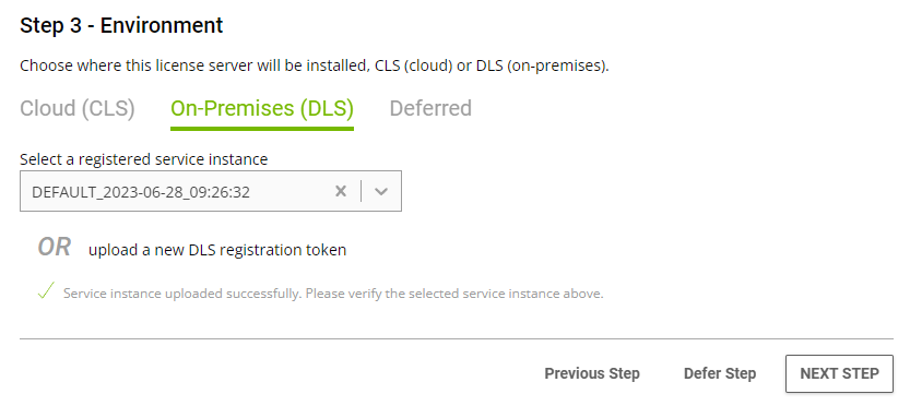 Refer to the DLS Server Deployment section of this document to complete the DLS server deployment and license activation.