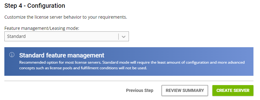 - After selecting the license type and quantity to be assigned to the license server, click N**EXT STEP** to enter the Environment interface.