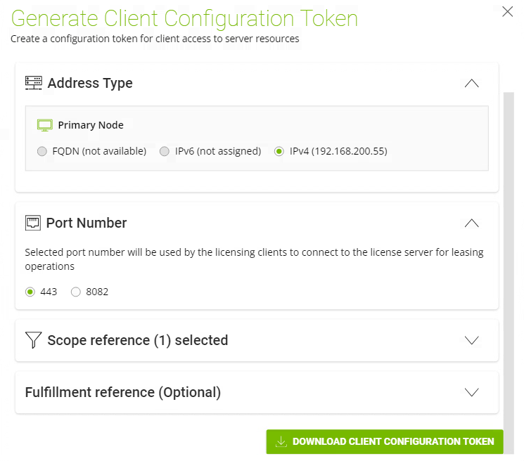 - Confirm the server IP and port number in the pop-up window. Please ensure that the correct IP address is selected(in some DHCP environments, invalid FQDN may be selected by default), and then click DOWNLOAD CLIENT CONFIGURATION TOKEN.