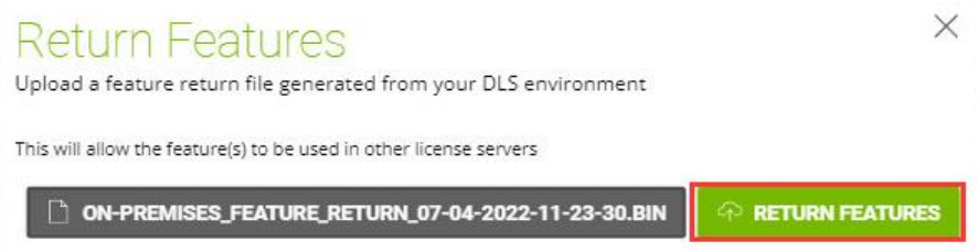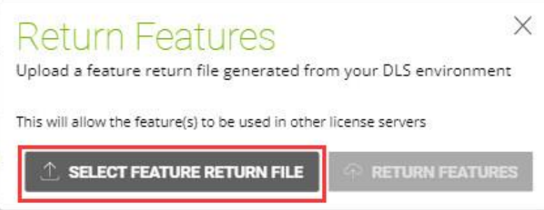 - Select the previously downloaded reclaim license BIN file and upload it. Then, click RETURN FEATURES to complete the license reclaim.