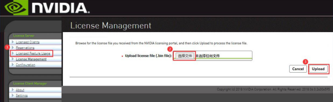 The user can view the current license usage of the Nvidia server, and can manually delete the client to release the license on the web console.