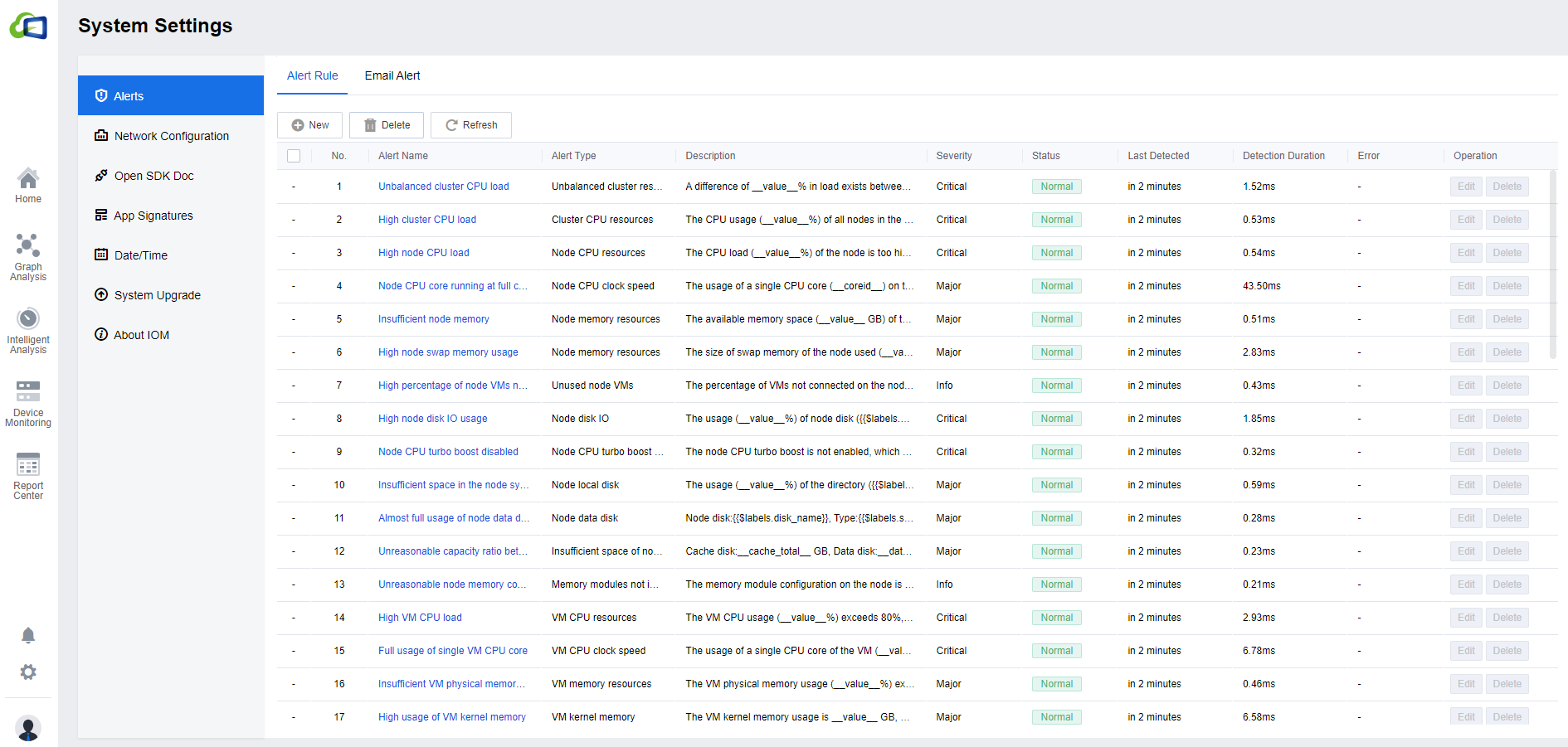 - Time inconsistency between the IOM platform, HCI cluster nodes, and virtual machines. It is best to ensure that the time difference between all clusters, nodes, and virtual machines managed by an IOM platform is no more than 1 minute. Otherwise, incomplete data or no data issue will occur if the time difference is more than 5 minutes.