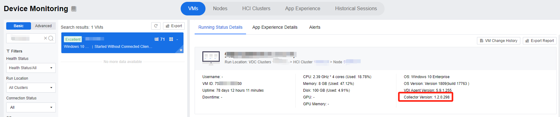 Pagent is not installed, the version is incorrect, or the Pagent anomaly leads to the lack of data of the relevant device, which in turn affects the data display. In Device Monitoring, you can see the Collector Version, as shown below: