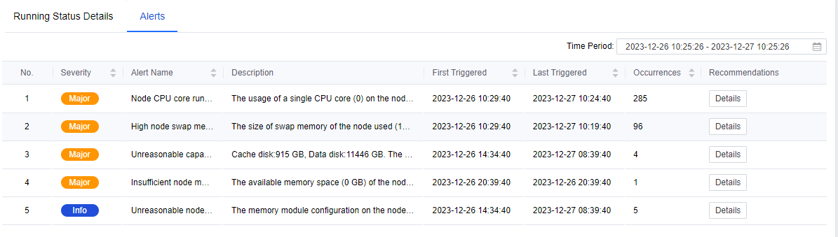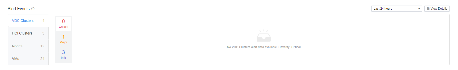 Alert events display the alerts for VDC/HCI clusters, nodes, and virtual machines. According to the severity of the events, categorize them into Critical, Major, and Info. Click on the corresponding alert to jump to the details of the corresponding alert page, which is convenient for administrators to locate the alerts quickly.